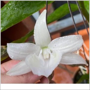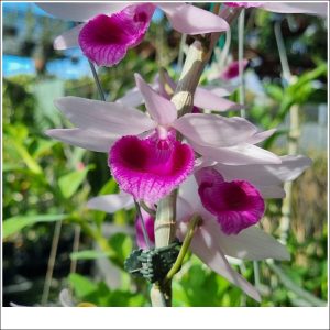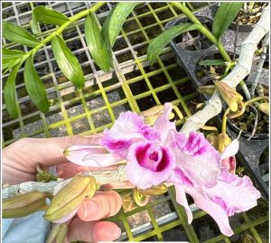 Dưới nắng, hoa tỏa hương mạnh, đồng thời màu cánh tím/hồng vẫn rực rỡ bên họng hoa trắng rất đẹp.Trên một bông hoa thì 5 cánh có màu biến thiên tím nhạt/hồng/hồng phấn tùy cây, họng hoa to, tròn, mở rộng màu trắng phấn như vôi, trong họng có gân hồng. Den. polyanthum hay là ...
